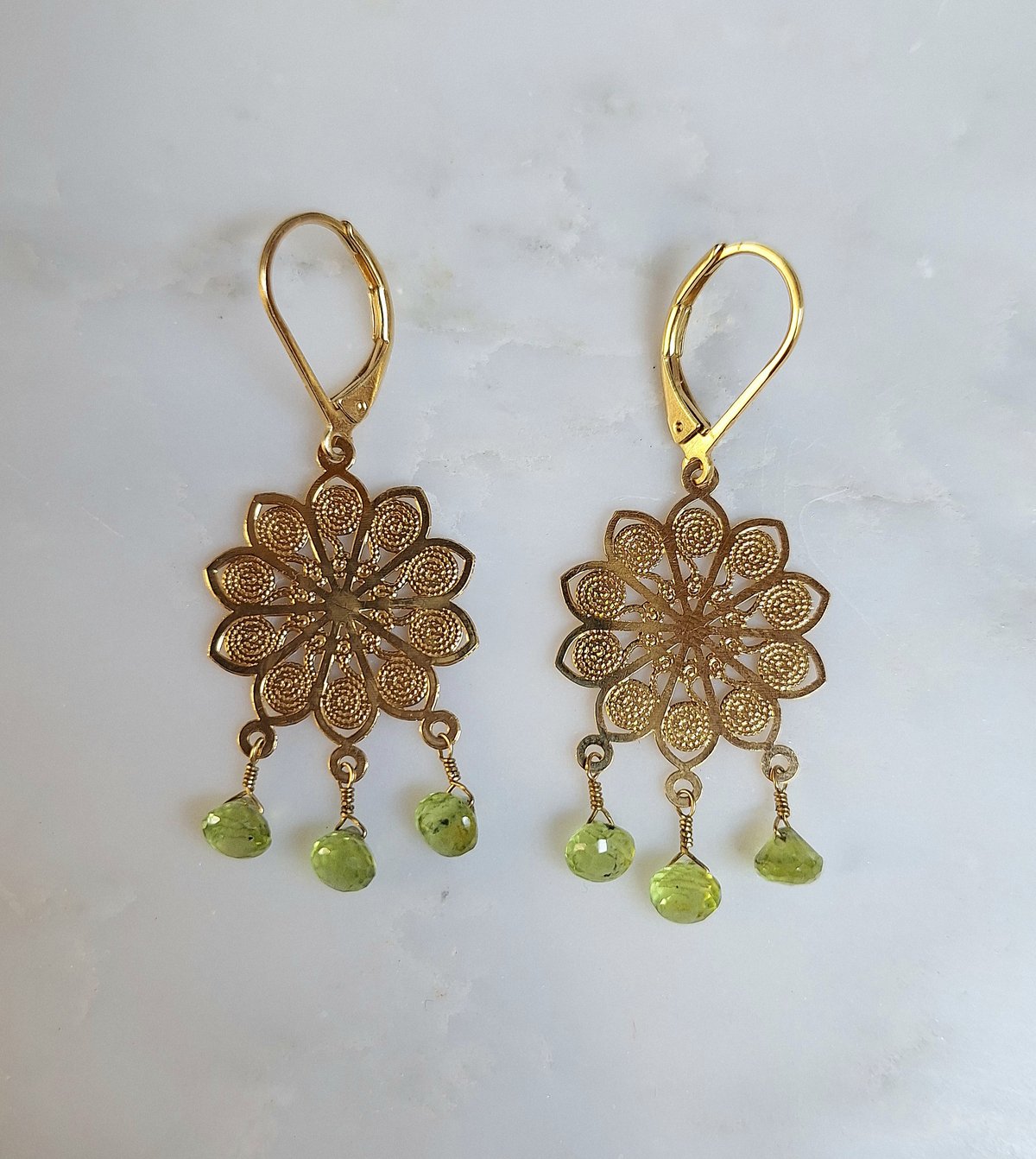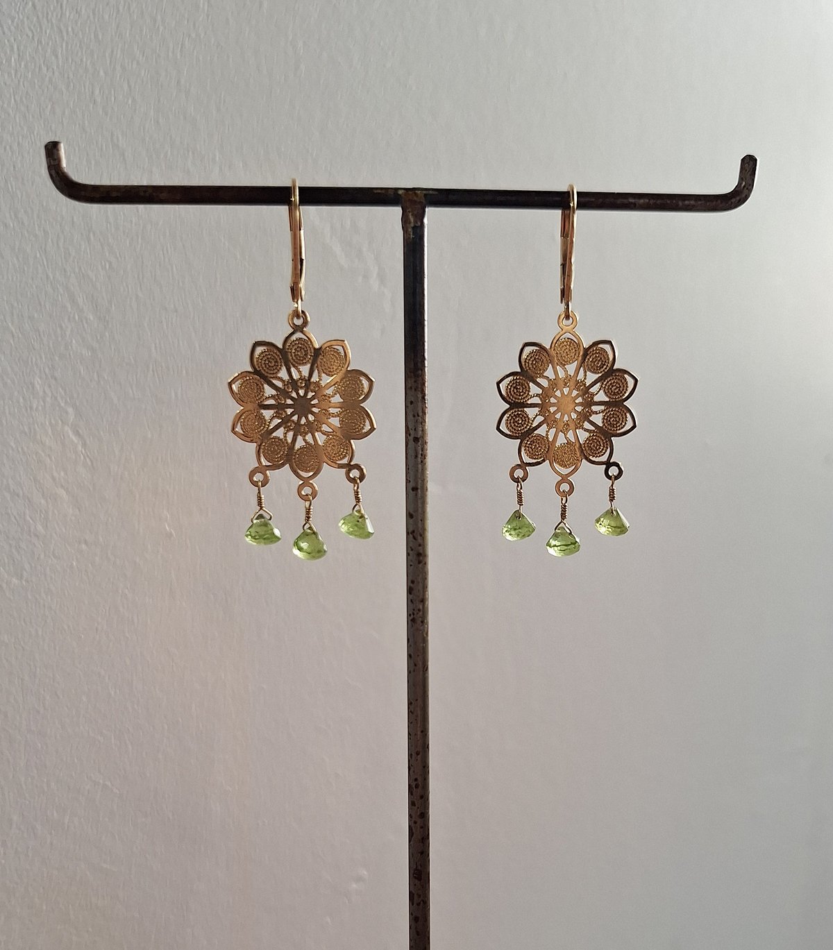 Péridots vert anis sur estampes ciselées / Longueur : 4,8 cm.